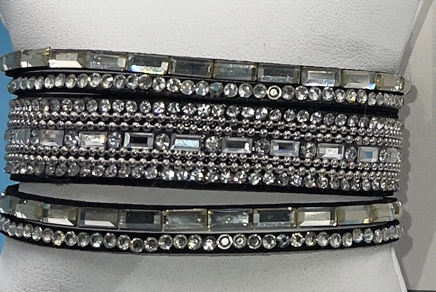 Pulsera envolvente de diamantes de imitación negros y transparentes
