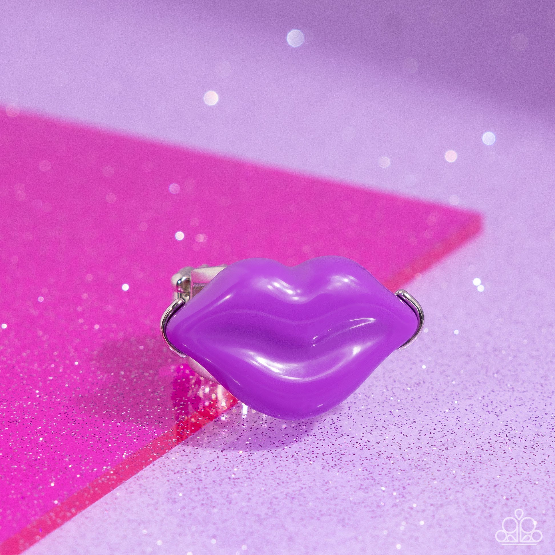 Presentados sobre unas ligeras bandas plateadas, un par de labios acrílicos morados se destacan sobre el dedo para lograr un acabado vibrante y despreocupado. Cuentan con una banda elástica para un ajuste flexible.