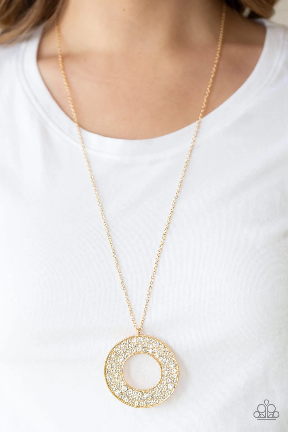 Paparazzi Bad HEIR Day - Gold - White Rhinestones - Necklace